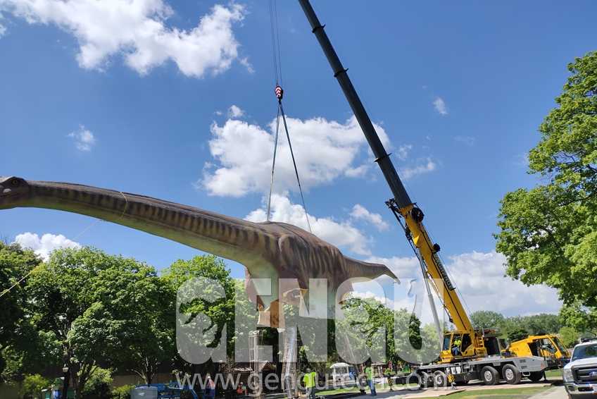 Last month, we received a good news that a super huge animatronic dinosaur we made for our regular customer was about to be installed. This project came from our regular customers in the United States, and we have cooperated many times. Last year, he found a zoo in Chicago and wanted to cooperate to host a dinosaur exhibition. He wanted a bigger and special landmark in this exhibition, so we made an Argentinosaurus—that was estimated to measure more than 100 feet in length and weigh up to 110 tons. And more than 40 animatronic dinosaurs he bought before will be transported from New York to this zoo in Chicago. When people are getting out this summer, the zoo may be a good choice to get close to nature and animals for most people, and these zoogoers will be also able to search for these amazing life-like animatronics that will be located throughout the park.